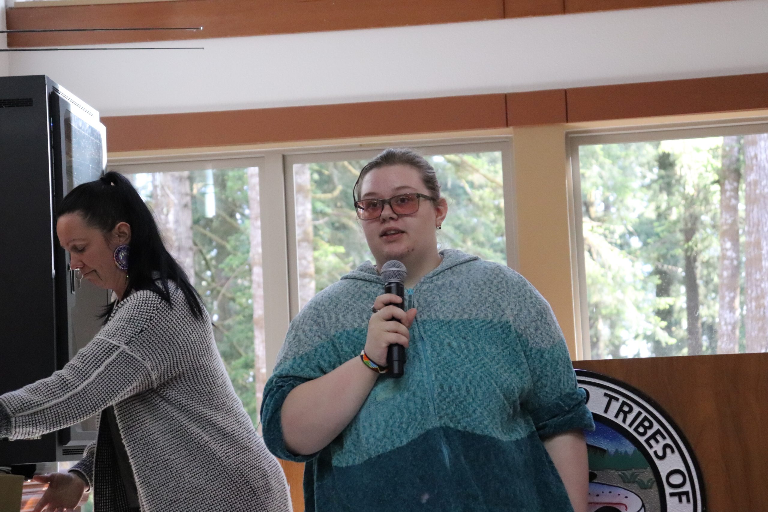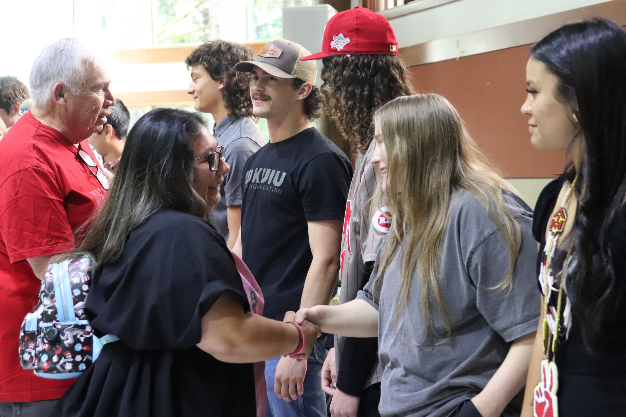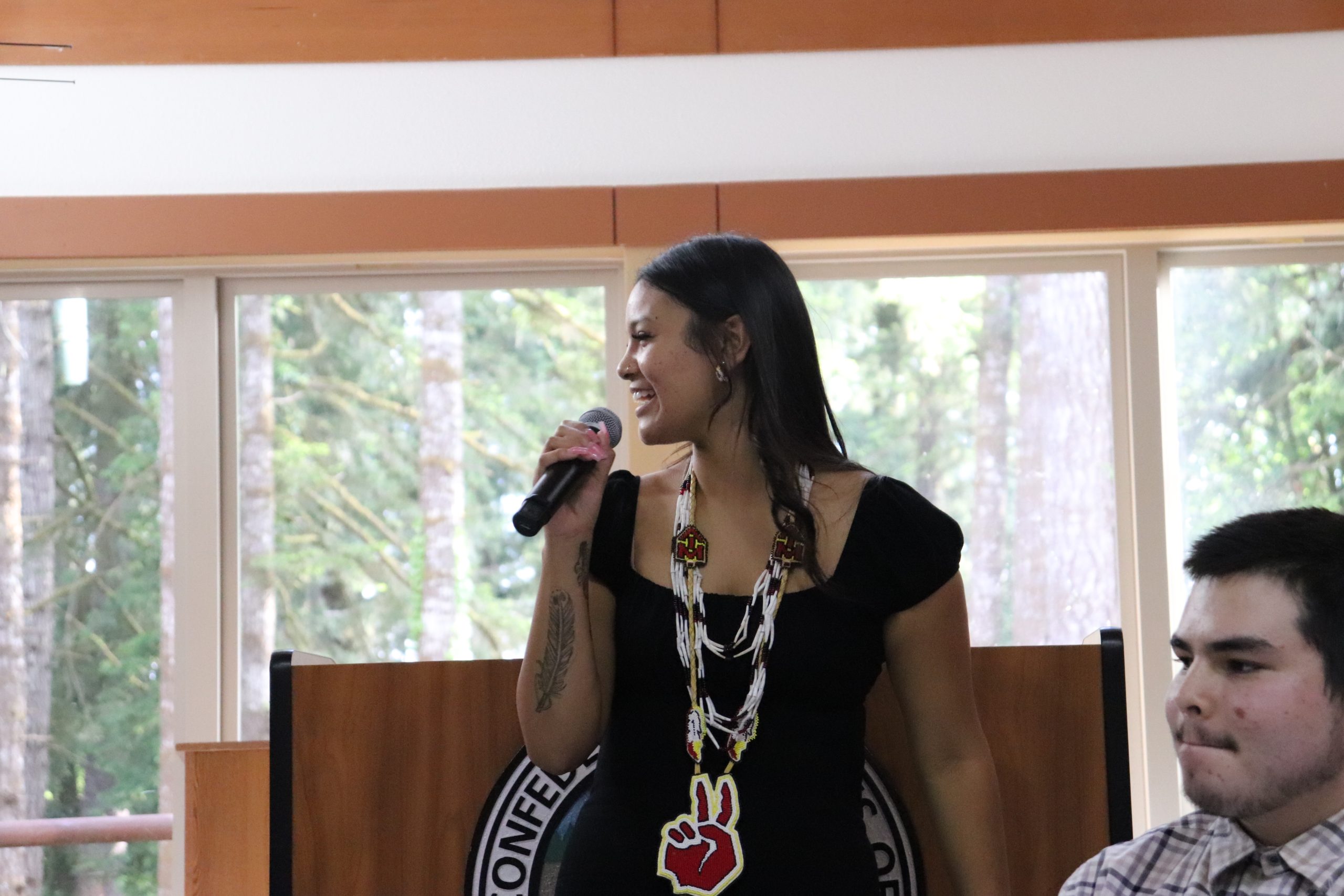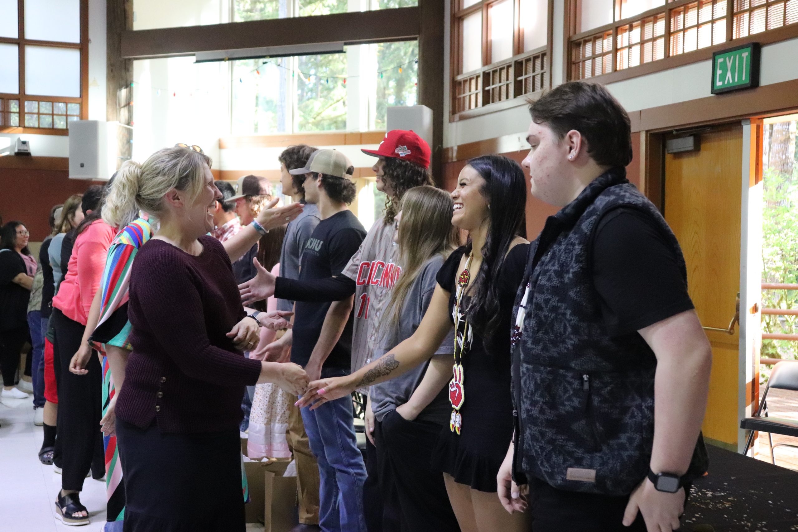 En la tradición de Siletz, los números pares suelen considerarse de mala suerte. Sin embargo, cuando se trata de collares de graduación, los números pares tienen un significado especial. Los miembros del personal del instituto de cada graduado elaboraron collares únicos de cuatro vueltas, que simbolizaban cada uno de los cuatro años de instituto que los estudiantes habían superado con éxito. Los collares, junto con otros obsequios, se entregaron a los graduados como muestra de sus logros y del orgullo de la comunidad por los mismos. ¡FELICIDADES a los graduados!
