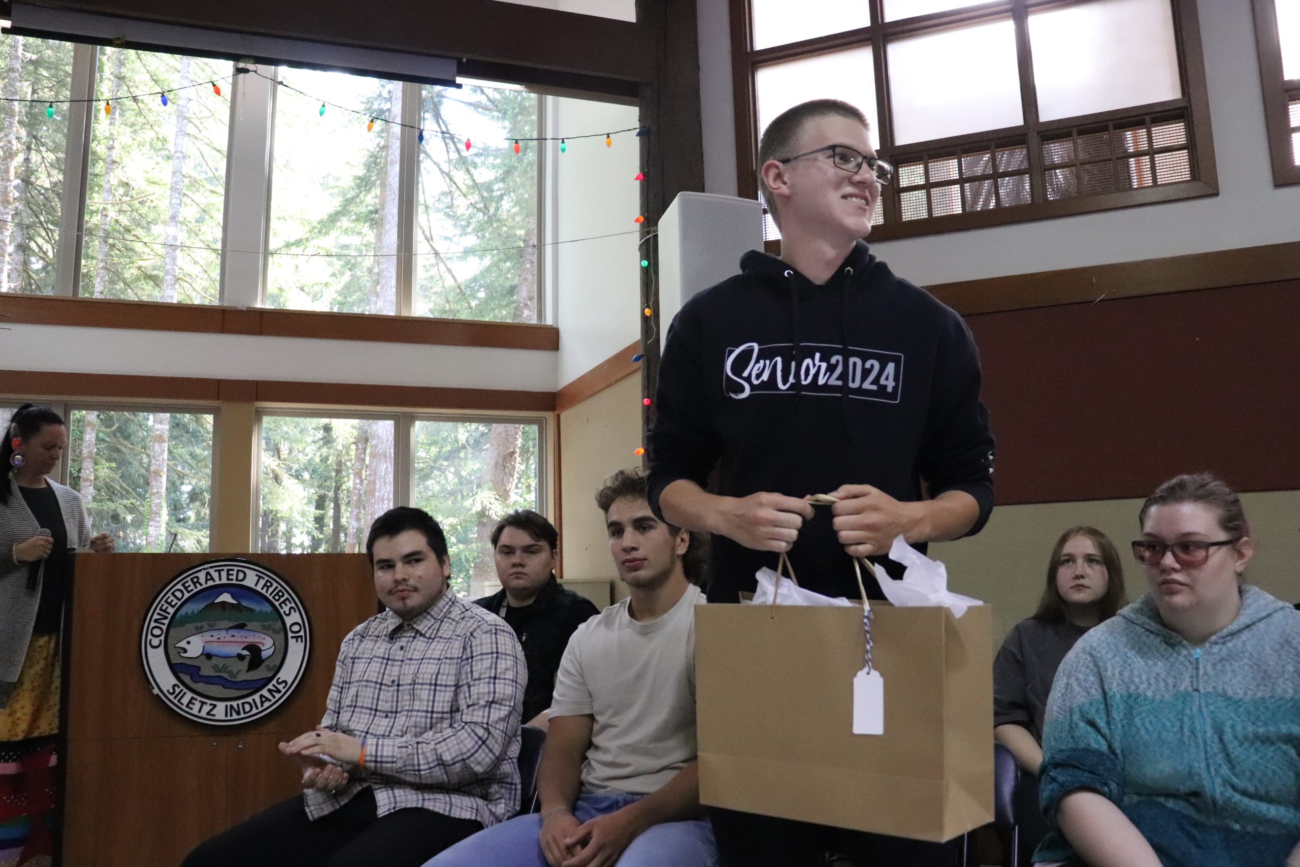 In Siletz tradition, even numbers are usually considered unlucky. However, when it comes to graduation necklaces, even numbers hold a special meaning. Staff members from each graduate’s high school crafted unique four-strand necklaces, symbolizing the each of the four years of high school the students successfully navigated. The necklaces, along with other gifts, were presented to the graduates as tokens of their achievement and the community’s pride in their accomplishments. CONGRATULATIONS graduates!